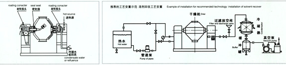 SZG雙錐回轉(zhuǎn)真空干燥機(jī)為雙錐形的回轉(zhuǎn)罐體;罐內(nèi)在真空狀態(tài)下;向夾套內(nèi)通人蒸汽或熱水進(jìn)行加熱;熱量通過罐體內(nèi)壁與濕物料接觸。濕物料吸熱后蒸發(fā)的水氣;通過真空泵經(jīng)真空排氣管被抽走。由于罐體內(nèi)處于真空狀態(tài);且罐體的回轉(zhuǎn)使物料不斷的上下、內(nèi)外翻動;故加快了物料的干燥速度;提高干燥效率;達(dá)到均勻干燥的目的。