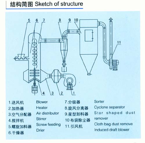 由于干燥室內(nèi)周向氣速高,物料停留時間短,達(dá)到高效、快速、小設(shè)備、大生產(chǎn)。