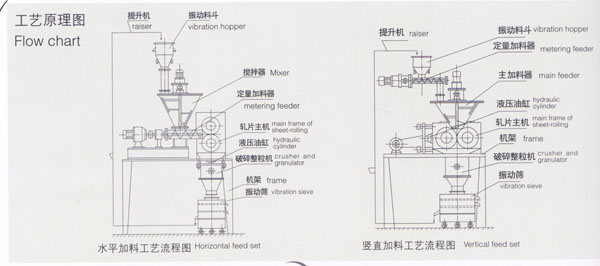 除了擠壓磨擦可引起爆炸的危險(xiǎn)品外,本機(jī)組對(duì)大部分干粉物料都可以直接制粒。通過旋轉(zhuǎn)接頭對(duì)軋輥進(jìn)行水冷,本機(jī)組亦可對(duì)熱敏性物料進(jìn)行制粒。